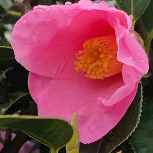 いつもの🐕散歩道 近所の公民館 雨☔️の中椿のピンクの花びらも 色っぽいなぁって╰(*´︶`*)╯♡ 皆さま体調にお気をつけて☘ よい一日を💓^_^ノ