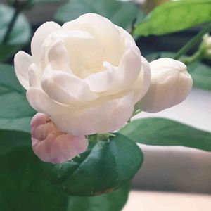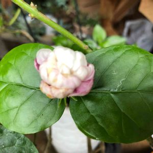 マツリカ🌿八重咲き✨ グレイスフルレディー・ジェイド💗 自粛中に初めてtef tefさんよりネットでお迎えしました。 咲き始めは、純白で香り立ちもすっごく良くて、うっとり〜(ღˇ◡ˇ*)♡ 咲き進むと花弁の下の方からピンク色になってきます😆(これは2日目) 表情が変わって、可愛らしんです💗 あまり大きくならないように剪定して、お花が沢山ついてくれるといいなぁ〜(*˘◡˘*)