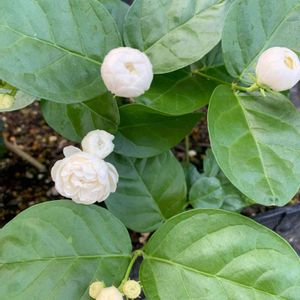 3年目のアラビアンジャスミン🌿 バラの様な花と丸い葉っぱが可愛い🥰