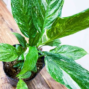お花屋さんで、涼し気で綺麗な葉っぱに惹かれちゃいました🌱 これも斑入りだけどスパティフィラムなんだ そのうちにお花を咲かせてくれるかな(^ ^) そして大きく育ちそうな‥