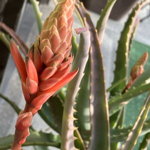こんにちは 今日のお花 アロエ あちこちで 眠りから目覚めた 植物が顔を出し始めました そんな中 一足早く 咲き始めた モノフィラスです 花壇でエリカのオレンジ色が 新鮮に映ります