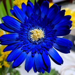 えっ❕❕ 笑えるぐらいビックリ👀🎵 ガーベラ💜 鮮やかすぎる✨青✨青✨青✨✨ これは自然に咲かせた花💠 調べたら、違うみたいでした❔ 白いガーベラを色水吸い上げ技術で染めた 個性的な品種とか▪▪▪ 少し個性的な方にプレゼント✨🎁✨ 子どもの頃に、理科の実験でやりましたね😃✌ 記憶甦ります🎵 今日は晴れそうです🎵 皆様、素敵な1日お過ごしくださいね💕❤