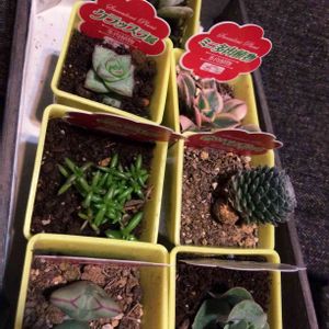 またしてもダイソーさんで購入してしまった、、、 手前の4つ、時計回りにコノフィツム属、セダム属、センペルビューム属、クラッスラ属となっていますが、名前が全くわかりません( ̄◇ ̄;)