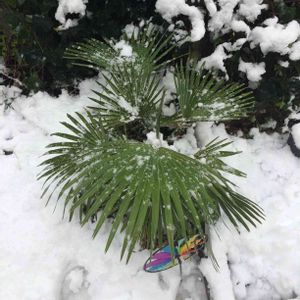 トラキカルプス プリンケプス。 雪の重みで葉が垂れてたので救出。