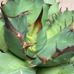 おはようございます🌿 アガベ・チタノタ姫巌竜です ファンの多いチタノタ 鋸歯がワイルド😎 もっときれいな形に育てられるようにしたい 今日もよろしくお願いします☕