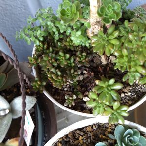 エケベリア3種丼🍜☝ 大きなルブラと小さめのサブセシリス・トップスプレンダー☝ いい感じのバランスがとれていて、仲良く平和な日々を過ごしています。そして丸葉万年草が仲間入りして可愛いさup⤴❤❤❤🌿 二回目の冬を無事に越せるといいな✨
