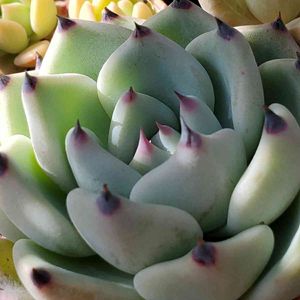 今日も多肉達が可愛くて辛かったです( ᵒ̴̶̷̥́ ·̫ ᵒ̴̶̷̣̥̀ )✨(笑) こちらは謎のざわわ交配さん♥️ コロラータ×ざわわか、タパルパ×ざわわではないかと囁かれております(笑) 何でもいいけど可愛いなぁ〜😍💕 でも何故かいつもどこかしら粉がはげてます… さらに言うと形もワルイ… まあ、良いんだ。 元気でいてさえくれれば😄❗️