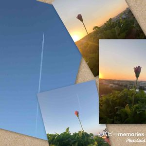 今日の朝~ 雲ひとつ無い空の上飛行機~︎ ┈┈ ✈︎ 朝日を受けてモモイロタンポポが 開きだしました~ お目覚めのようで~す🤗おはよう~🔅🔆