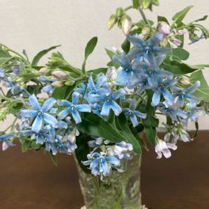 ブルースター♪💙 冬越しのブルースターが満開になり、雨に☔️打たれると、シミが出来るので、カットして切り戻しました。枝が随分伸び切ってたので、思い切って短くしちゃったけど、また咲いてくれるかな?去年もたくさん咲いてくれたので、今年も2番花期待しちゃいます❣️ 知らないうちに、サヤが出来てて、ビックリ‼️昨年採った種は、蒔いて、今育ててますが、まだ4センチくらいです。挿木もトライしてます。どっちが成功率高いかなぁ?今日は、晴れ☀️でたので、庭仕事が夕方から、出来ました。😊