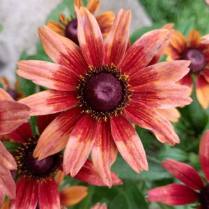 ①②ルドベキア チェリーブランディ 7月の初めにお迎えして、良く咲いてます🤗 シックなお色好きです🤗 今日は雨☔の日、雷⚡も聞こえてます😣 たったいま凄い音❗⚡でした😱 怖い((( ;゚Д゚)))