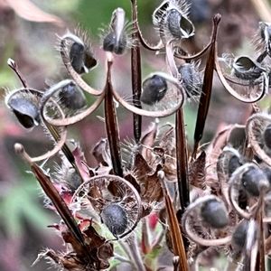 花後の姿色々 ① ナガミヒナゲシ・オレンジ色の花の後よく見ると面白いですね❣️ ② ヒメウズ・小さい白い花を咲かせた後、実が弾けて種が飛び出します。 ③④ アメリカフウロ・まだお神輿にはなっていませんが、残 った萼もまた綺麗です💞 ⑤ クレマチス・紫色の素敵な 花は見過しましたが、こんな実 が出来ていました‼️ 花の咲いた後もまた面白いですね❣️