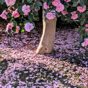 花散歩で✨ 🩷💚🩷🤍💚🪽💖🤍🩷♪ 1️⃣山茶花 木の根元に つい先日までは… 桜の紅葉の落ち葉🍂 今は… 山茶花の花びら🩷 2️⃣葉牡丹 水滴がキラキラ🫧✨ 3️⃣青鷺 4️⃣ランタナ ハートでさらに可愛い💖 5️⃣エンジェルストランペット 咲き始め👀 今日も 笑顔😄で 過ごせますように💐