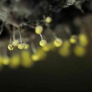 粘菌 タマツノホコリ 12日にアップした 未熟体のその後です 拡大してみると 胞子が見えます ほんとうに 美しい✨