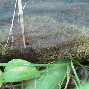 粘菌 モジホコリの仲間 ちょっと 画像が鮮明では ありませんが 子実体形成中 撮影 8/27 6:39