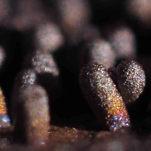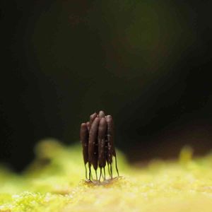 粘菌 ツツスワリホコリ どちらかというと 地味な変形菌ですが 接写すると 金属光沢が わかります