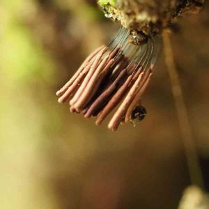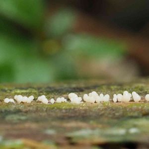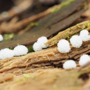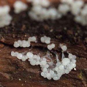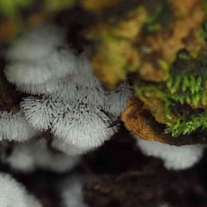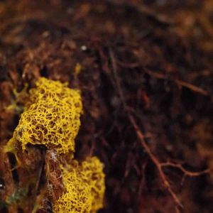 変形菌は粘菌とも呼ばれます。胞子で増えます。キノコやカビとは異なり一ヶ所に留まり周囲に菌糸を伸びして成長するのではなく単細胞の体をアメーバのように変えながら倒木や落葉上を移動し微生物を食べて成長します。