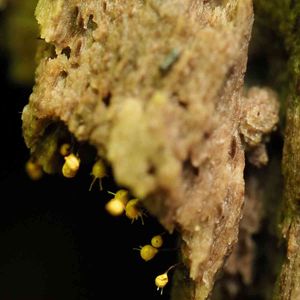 粘菌 変形体から子実体へ 変化中 未熟な子実体が たくさん 明日は雨 未熟なままで 終わりませんように