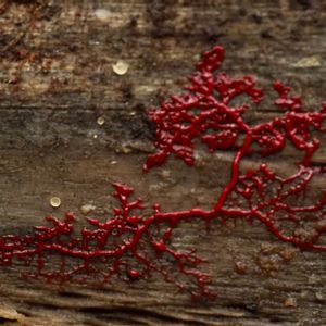 粘菌の 赤い変形体 多分 アカモジホコリだと思います 観察から3日経ちましたが 子実体ならずに うろうろしています😅