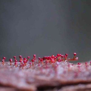 アカモジホコリ 今朝には 子実体形成してました まだ未熟体です 赤はカワイイ❣️