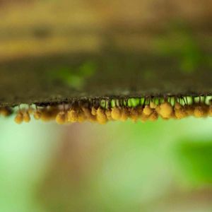 みーたーわーね~👻 (どうにか涼しくなりませんかね(. .`)💦) 粘菌 マメホコリさん.。oO 因みに左上の上の方にいるのは、 1cmもない、あり🐜さん。 粘菌ばかり続けて見て頂きました🙇♀️
