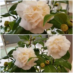 自動ドアが開くなり👀 目に飛び込んできた お初の椿 1度見 2度見 3度見 花弁の質感 触感 華やかさに 見れば見るほど 惹かれてしまった❗