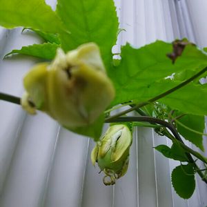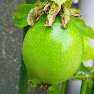 時計草=パッションフルーツ 花が見たくて育てていたのに花を見逃し(笑)何時のまにか実が成り、今はこんなに大きくなりました☺