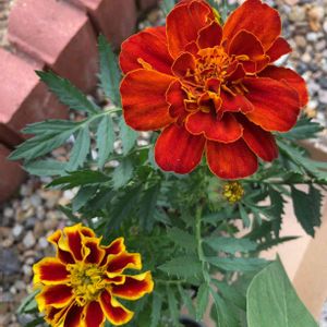 母が種を蒔き育ったマリーゴールドを分けてもらいました。 最初はオレンジが勢いよく大きくなりましたが、あれよあれよと言うまに黄色が3倍以上に育ち窮屈なくらいになってしまいました😅