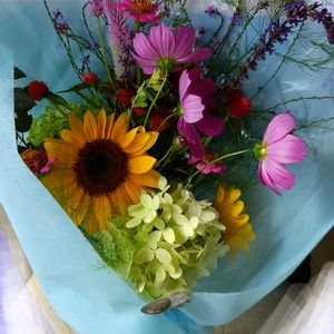 友達に花束作りました。 ラッピングがうまくできないけど、気持ちだけは伝わるでしょう💐