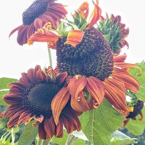 久しぶりに🌻ヒマワリのムーランルージュに出会いました。 ムーランルージュはアメリカ生まれの濃いチョコレート色が個性的な🌻ヒマワリです。 『🏷️太陽がくれた季節a』