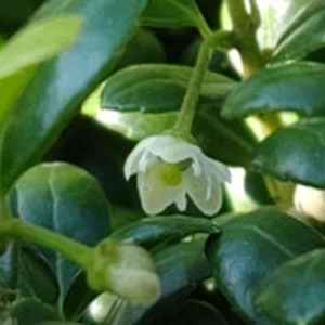 季節を間違えた❓ エントランスフェンスの柘植に可愛い花が😍