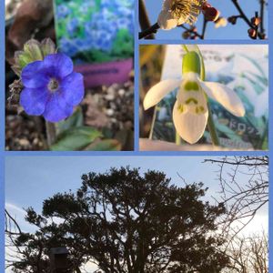 今日は嬉しい発見が😃 激しい風の吹く中、プルモナリアの💙の花が咲いていました💗🎶 置き忘れてしまった、ポットのスノードロップの花も🤍💚🎶 梅の花もやっと開きはじめました🤍🤍🤍🎶 そして、日除けにしていたけれど、庭が暗いからと、乱暴に(ちょっと早めに)バッサバッサと枝を落としたつげの木🌳 スカスカになったら、ヒヨドリさんが離れて、可愛い小鳥さん達がやって来てくれました💗🎶 メジロ、モズ、ジョウビタキ、シジュウカラ たまにキジ、キジバト…計算外でした😊🎶🎶