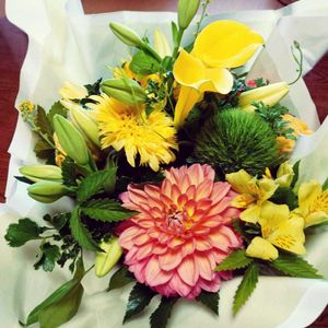 明日 主人の七回忌の法要です。 帰省している娘よりお花が送られて来ました。 早速飾った所です。