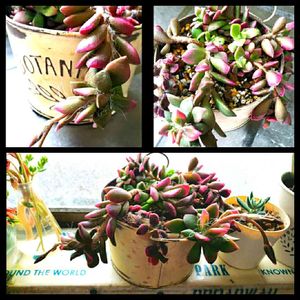 去年初めて多肉の寄せ植えにした夕映え✨ 一回り大きくなって綺麗に育ってる✨💓🎵 一緒に植えた月兎耳が30cm位に伸びてた😱