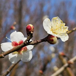 梅 (ウメ) バラ科 後ろ向きの赤い萼と蕾が可愛いですね。