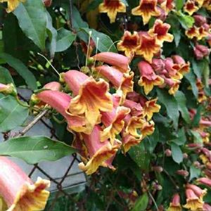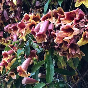色とりどり♬ 華やかになってきた実家の庭🌿 2メートルのドームから 溢れる様に咲いてる ビグノニア・カプレオラータ 和名:ツリガネカズラ そろそろ終盤だけど 咲いているところを撮ってみたよ♪ (*‥)ン? スパイシーなニオイが〜 まさに加齢臭♪いや🙄カレー臭🍛♬ カレーバイン とも言うみたい✨ スパイシーな香りの花なんて なんとも不思議だわ〜(・∀・)✨