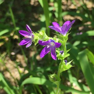 💜キキョウソウ(桔梗草) キキョウ科 キキョウソウ属 花は車形花冠または鐘形花冠で青紫色 放射対称な5弁の花冠を持つそうです 会えました❣️やっと、 ずーっと探し続けて、今まで探せども探せども雛キキョウソウにしか会えなかったのですが、今日、やっと会う事が出来ました ₍₍ ( ๑॔˃̶◡ ˂̶๑॓)◞♡