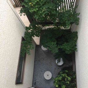 2017.5 廊下から坪庭 廊下からは視線を遮らない1枚ガラス✨️