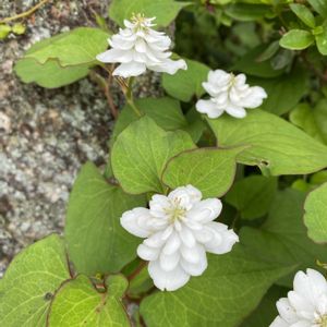 ♡庭に咲く白花♡今年投稿しそびれた庭の白花たち(5、6月) 春から夏にかけては庭の花も外出先でも投稿したいお花が沢山ありお蔵入りしてしまいがち〜 そんな5、6月に咲いた庭の花をご覧下さいネ🙇♀️ ❶ヤブミョウガ 関東以西に分布の為 福島では珍しくお友達から株分けしていただきました🤭 ❷ギョウジャニンニク ❸八重咲きドクダミ ❹春咲きシュウメイギ(アネモネヴァージニア) ❺ふじさんアジサイ北斗 🏷️白い水曜日♡