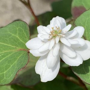 職場近くの植込みにて 普通のドクダミに混じって八重咲きが生えてるなぁ。。と よく見たら、ミドリニリンソウの如く 萼が緑になってました💚 ミドリドクダミ⁈