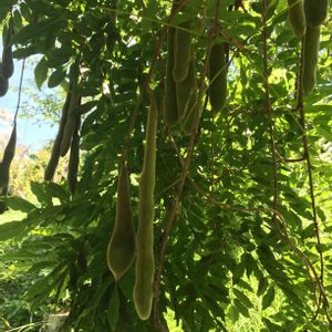 藤棚の中に実が沢山ぶら下がっていました。 涼しい〜〜‼️