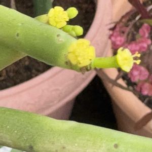 令和7年6月7日 ミルクブッシュ(ミドリサンゴ) 黄色の花が咲いていました、 初めて咲いたので、アップしました。