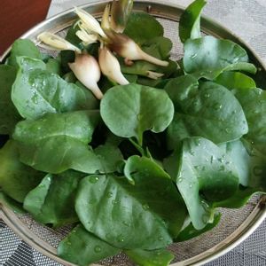 おはようございます😊 オカワカメ🌿 今GSお休み中の花友さんの好きなオカワカメ私も今年種芋?(知人から)頂き庭でトライ美味しく頂いています😋 励みになればいいな庭茗荷も添えて🍀♡ ②枚目畑帰りに…アザミとベンチ