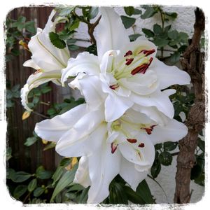 八重咲きの白い百合が咲きました🤗 2年目ですが、無事に咲きました💓