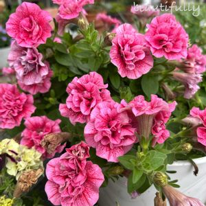 4月にお迎えした八重咲ペチュニアフラメンコストロベリー、モリモリに咲いてくれてます。 一緒にお迎えしたカリビアーナはイマイチみたい。どうしてかしら?