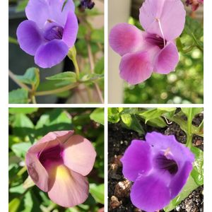 我が家のスーパートレニアカタリーナ 上ふたつは越冬組の ブルーリバーとピンクリバー 下左は先月購入のラムレーズン 下右は挿し芽して育った アメジスト! 4つ並べると ブルーリバーとアメジストの差があまり無いみたい😄 こういう垂れ下がるタイプのトレニアは各社出してるけど PWさんのカタリーナシリーズは頬紅刺したように、ほんのり濃い色になるのが特徴なのかな?