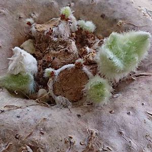 ブラジリアン・エーデルワイス 「断崖の女王」って・・・😁。 新芽ちゃんが出現❗こんな小さいのにすでに毛むくじゃらだぞ‼️。事務所で飼育中❣️。