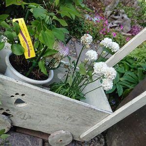 5/9お出かけ時のお買物part2✌ 閉店セールのお花屋さんにて💐 🌼右🌼 4月にピンクを58円とお買い得に買ったアルメリア🌺思いの外、可愛く咲いてくれたので白を見つけget🌼 🌼右🌼 クレマチス「カイゼル」 枯れかけた花が3輪あったけど、写真もなく名前だけのタグ🌱迷ったけど700円だし、「英国王立園芸協会登録品種」σ(∵`)?にひかれ、買っちゃえーぃ💕 ウフフ😸お買い得だった😻 持ってないパテンス系八重の薄紫色で少し匂いがあるらしい😸 なんたってベートベンピアノ協奏曲「皇帝」よりの命名😸 恐れ多いが、大切にします💕 白の荷車は、約五年前に作ったもの🍀 最近DIYしてない😽 なんか作りたいなぁ😽
