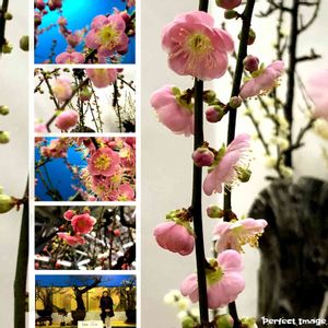 おはようございます.*✿ 全体に撮るとブルーの幕から上 鉄骨が見えてしまうため梅の綺麗さが 無くなってしまうため殆ど梅ノ木の一部を撮りました。