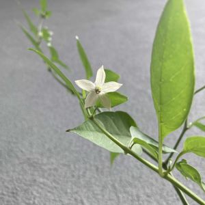 今日のお花 🍀トウガラシ ナス科 トウガラシ属 唐辛子の花色は白色 グリーンの実ができて 赤く色づくと完熟 唐辛子に!
