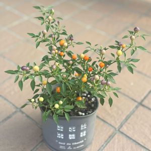 【五色唐辛子・パープルファントム】 おはようございます😉 今日はこちらの『五色トウガラシ🌶️』を、ご紹介します。 ナス科トウガラシ属の植物🌿で、おもに熱帯アメリカ🇺🇸地域を原産とする一年草🌱の草花になります。 食用ではなく観賞用として栽培されているので、別名『観賞用トウガラシ🌶️』の名で販売されていたりもします☝️😉 品種🪴によって赤❤やオレンジ🧡紫💜など基調とする色が変わってきますが、今回は紫💜と黄色💛の実🌶️に 黒みがかった葉っぱ🌿が特徴的な【パープルファントム】を紹介します。 背丈は30〜50cm程で、実🌶️は直立にピーンと立っています。食用のトウガラシと比べると少し太めですね🙂 葉色🌿は深緑色をしていますが、時期によって明るさが増して赤みがかっていきます。 熱帯植物🌴なので暑さ🥵に強く寒さ🥶に弱いですが、暖かい気候なら冬☃️でも楽しめるので温度管理出来る場所であれば夏🎐から冬☃️にかけて長く楽しめます🤗❣️